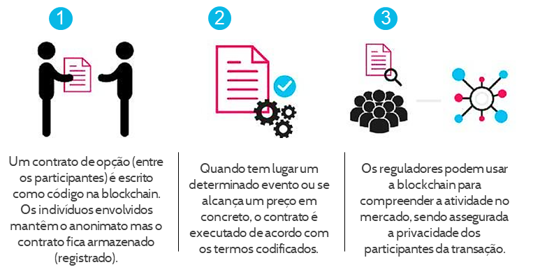 Nesse sentido, visando a segurança da organização, uma das funcionalidades da blockchain é a criação de “smart contracts” (contratos inteligentes), contratos autoexecutáveis que não necessitam de intermediários[8].
