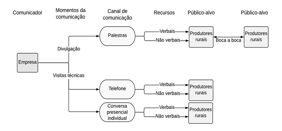 Nos momentos seguintes aos que a comunicação acontecia entre a empresa e o produtor rural, os objetivos voltavam-se para a elaboração do projeto e, posteriormente, para o monitoramento das atividades previstas. Nesses casos os canais de comunicação e os recursos utilizados não diferiam entre si. O agendamento das visitas era feito por telefone, e os recursos considerados não verbais foram a entonação de voz e as impressões que o comunicador poderia transmitir ao falar.