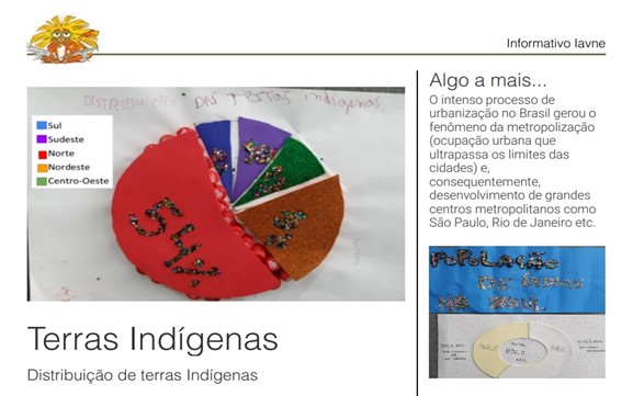 Os educandos fizeram um estudo sobre as populações indígenas e o impacto da urbanização em suas terras e modo de vida. A interdisciplinaridade ocorre quando uma disciplina transfere seus métodos para uma ou mais disciplinas[12]. O gráfico elaborado pelas crianças concretizou os saberes etnomatemáticos que refletem uma maneira socioculturalmente construída de interpretar quantidades[4].