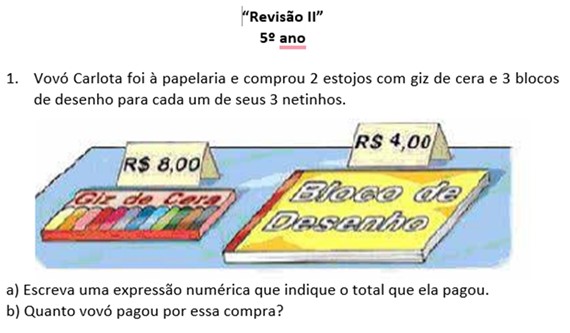 Ao mesclar informações obtidas nas áreas de Geografia e História por meio da transferência do modo matemático de organizar graficamente dados, percebeu-se a presença da interdisciplinaridade dos saberes. Nessa reportagem as crianças conseguiram visualizar a aprendizagem das disciplinas de Geografia e História usando a metodologia do gráfico da matemática. A Língua Portuguesa foi usada para produzir uma reportagem, transferindo sua forma de fazer para outras disciplinas presentes nessa ação pedagógica[12]. Essa atividade demonstrou a eficácia de metodologias ativas, complementadas pelas rotinas de pensamento e aprendizagem visível. A abordagem, descrita anteriormente, permitiu a inversão do processo de aprendizagem, deixando os estudantes no protagonismo e fazendo-os perceber o caminho percorrido para a construção dos seus saberes matemáticos. Para atender à demanda da escola e dos pais, as aulas também mantiveram um formato tradicional fundamentado no livro didático escolhido pela instituição de ensino. A Figura 7 exemplifica uma atividade de revisão do conteúdo nesses moldes.