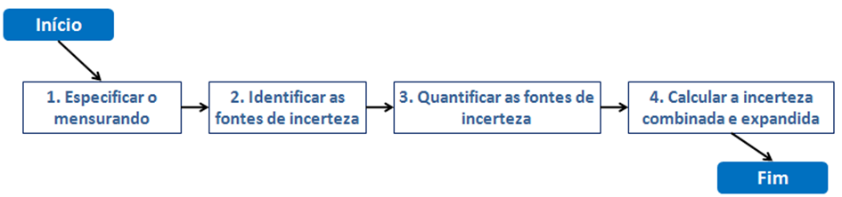 O processo de estimação de incerteza baseou-se na validação de método, uma vez que foram utilizados os desvios-padrão de repetibilidade e de precisão intermediária para o cálculo da incerteza-padrão combinada[6]. A Figura 1 apresenta o macroprocesso de estimação de incerteza adotado para cada análise de nível de garantia.