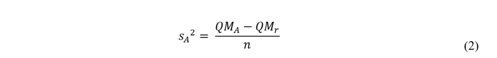 onde, sA2: é a estimativa da variância da contribuição do fator analista; QMA: é a média da soma dos quadrados do fator analista; QMr: é a média da soma dos quadrados residuais; n: é o número de medidas feitas por analista[22].