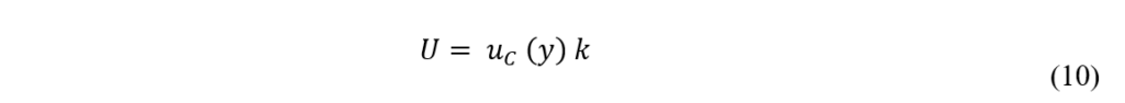 onde, U: é a incerteza expandida; uc(y): é a incerteza-padrão combinada; k: é o fator de abrangência, geralmente 2, que corresponde a um nível de confiança de aproximadamente 95%[8].