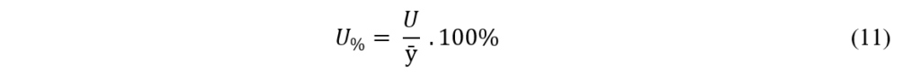 onde, U%: é a incerteza expandida relativa; ӯ: é a média geral dos resultados obtidos por todos os analistas[8],[24].