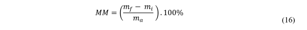 O mensurando da quantificação de gordura extraída por hexano em bloco extrator fechado é o extrato etéreo (EE), e sua grandeza física foi expressa em teor percentual mássico, conforme o método oficial AOAC 954.02 – gordura (bruta) ou extrato etéreo em alimentos para animais de estimação: método gravimétrico[14],[17]. O cálculo dessa determinação está expresso na Equação 17.
