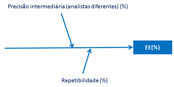Foram considerados apenas os desvios-padrão de repetibilidade e de precisão intermediária para o cálculo da incerteza (Figura 10). A Tabela 8 apresenta os resultados experimentais de EE em amostras de ração para gatos, cuja especificação garante teor mínimo de 10%.
