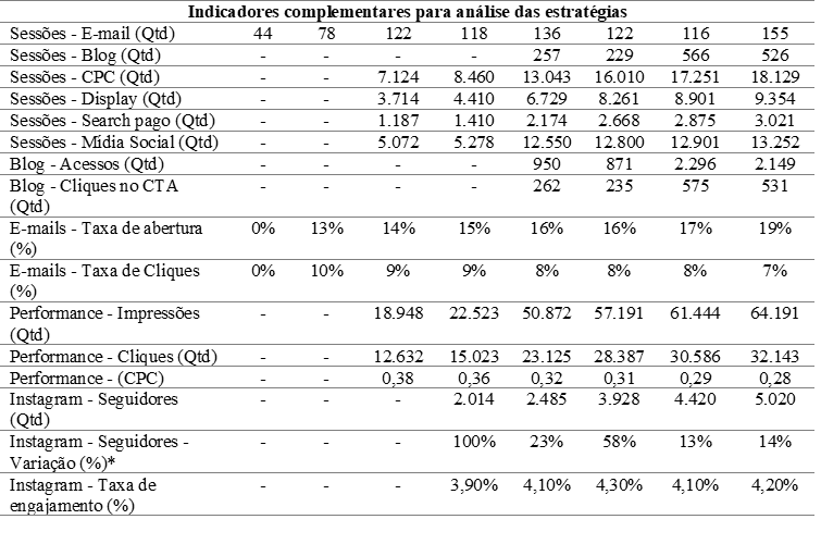 Para a análise dos KPIs das estratégias desta pesquisa, foi elaborada a Tabela 2, com base em documentos internos da Empresa A[8].