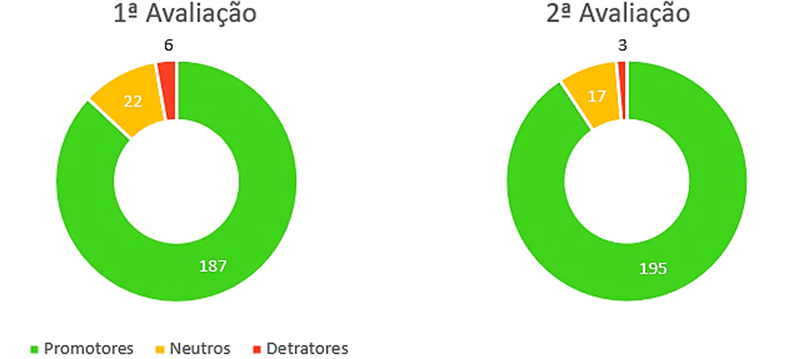 Figura 3. Resultado da aplicação do NPS da 1ª e 2ª avaliações