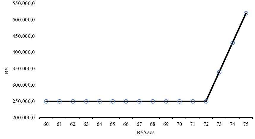 Custo total (com juros e prêmio) | Reais/Saca | 69,23 |
