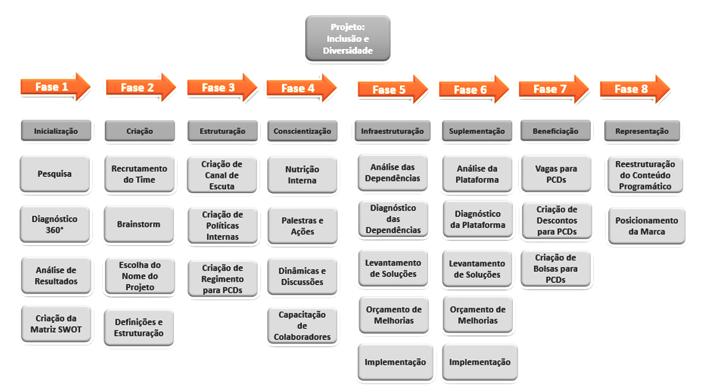ou Work Breakdown Structure (WBS) –, que visava a criação de um projeto de inclusão e diversidade na