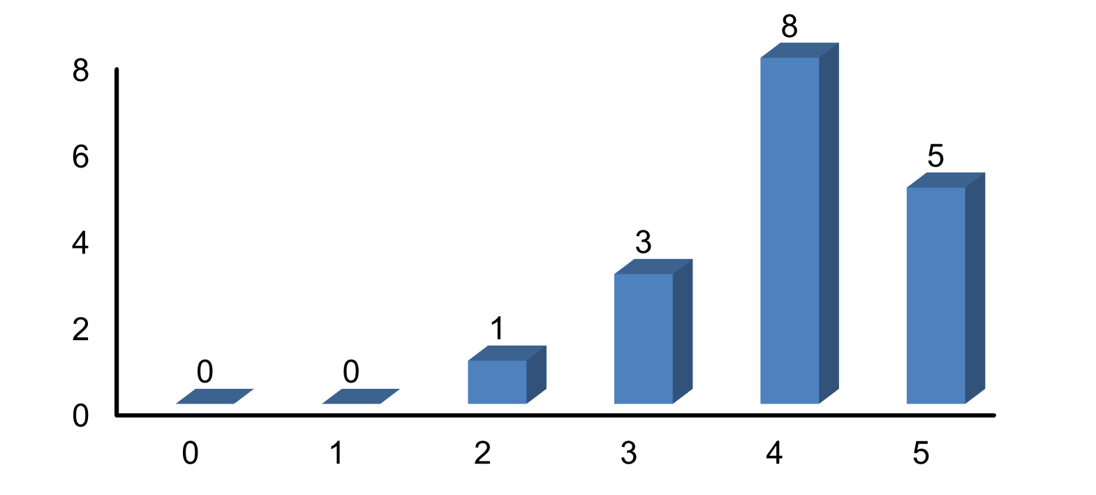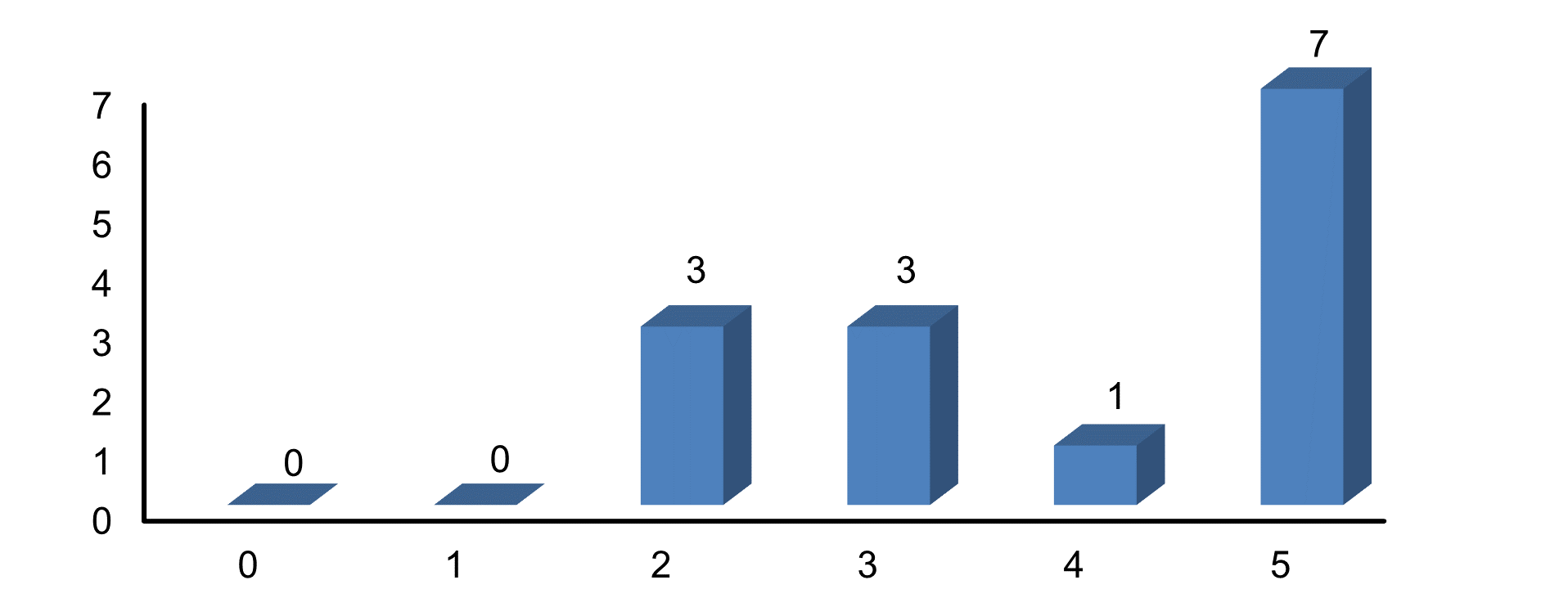 O próximo passo foi analisar a pesquisa documental com uma população de 6.528 alunos e ex-alunos, nas modalidades de educação à distância e presencial. O intuito foi verificar a existência de ex-alunos e alunos regulares PcDs e suas percepções quanto ao processo de inclusão. Essa pesquisa teve a participação de 20% da amostra. Do total de respondentes, 1% mencionou ter alguma deficiência (17 pessoas). A Figura 2 mostra a distribuição das deficiências dos integrantes da amostra. Foi perguntado então a esses 17 respondentes qual nota dariam à inclusão no MBA, e os resultados são apresentados na Figura 3.