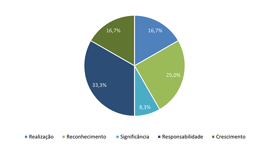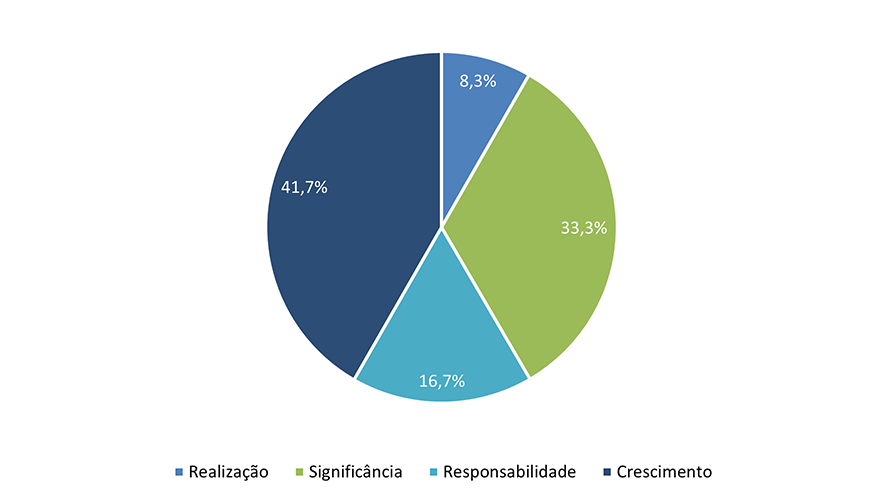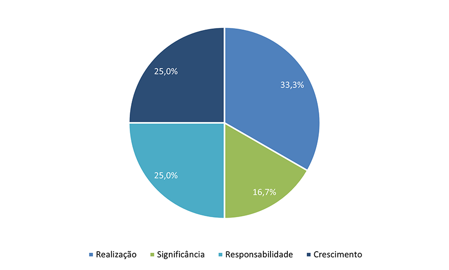 A análise conjunta destes resultados (Figuras 6, 7 e 8) mostra que o entendimento sobre motivação expresso pelos participantes está de acordo com o indicado em um motivador da teoria de Herzberg[8]. A seguir, detalham-se as percepções sobre os fatores mais destacados: