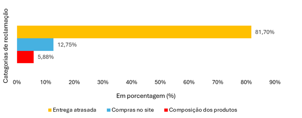 As reclamações relacionadas a atrasos nas entregas destacam deficiências operacionais e de gestão da cadeia de suprimentos. A entrega pontual de produtos é uma expectativa básica dos consumidores e falhas nesse processo comprometem a percepção de valor da marca, prejudicando a confiança e lealdade. A transparência nas comunicações, embora já existente, pode ser aprimorada, utilizando ferramentas como sistemas de rastreamento de pedidos, atualizações rápidas sobre atrasos e canais dedicados para reclamações, o que poderia ajudar a reduzir incertezas e fortalecer a confiança dos consumidores.
