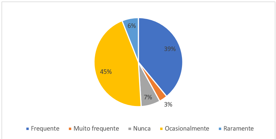 Para 45% dos gestores, tais processos passavam por melhoria contínua apenas ocasionalmente; 42% disseram que nas escolas onde atuavam percebiam os processos de gestão escolar frequentemente sendo melhorados de maneira contínua. Por fim, 13% afirmaram nunca ter percebido ou ter percebido raramente a realização de tal melhoria, conforme demonstrado na Figura 3.