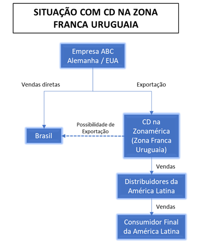 Nesse contexto, o presente estudo buscou avaliar as vantagens e desvantagens envolvidas na implementação de um centro de distribuição de uma empresa de produtos laboratoriais na zona franca do Uruguai. Foi elaborado um estudo de caso a respeito dessa empresa, que foi fundada em 1945 e possuía 25 subsidiárias em todo o mundo, sendo a de São Paulo responsável pela comercialização dos produtos em toda a América Latina. O modelo de negócio da filial brasileira era diferente do utilizado pelas que estavam situadas em outros países da América Latina; no Brasil, a empresa atuava 100% com vendas diretas, enquanto nos demais países a venda acontecia por meio de 20 distribuidores em toda a região (Figura 1).