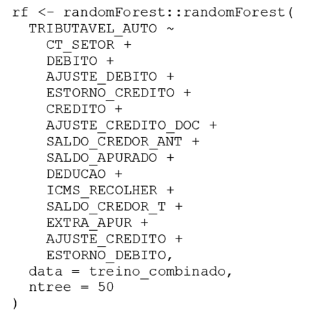 O modelo foi treinado com 50 árvores (ntree = 50), conforme algoritmo representado na Figura 2.