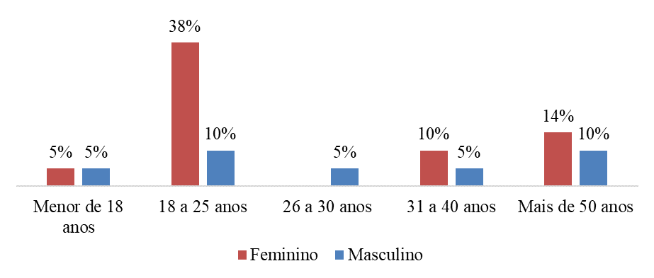 Dos 17% que definiram como super-rápida uma entrega em que o produto chega em até uma semana após o pedido, 38% possuíam entre 18 e 25 anos e eram do gênero feminino, como apresenta a Figura 7.