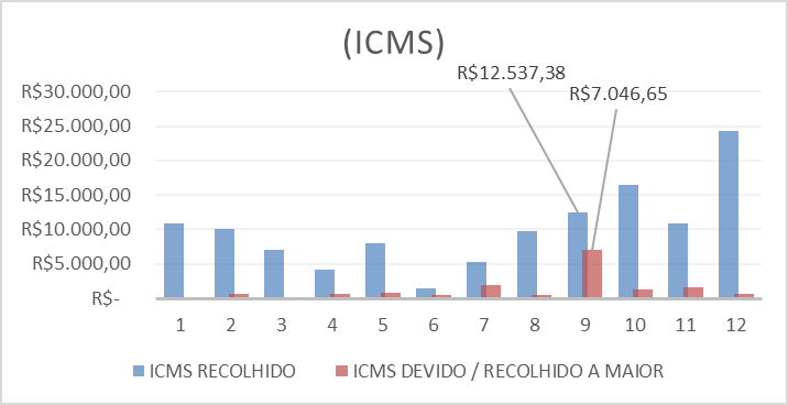 Pontualmente, além disso, se tal análise considerar os meses em que houve o recolhimento, será possível notar que o valor submetido a tributação sem a devida aplicação do benefício fiscal certamente colaborou com algum tipo de inadimplência da organização no período estudado, porquanto observa-se que, no mês de setembro do ano de 2019, a quantia representativa (ilustrada abaixo) correspondeu a mais da metade do valor recolhido a título de ICMS sobre a receita bruta auferida naquele mesmo mês.