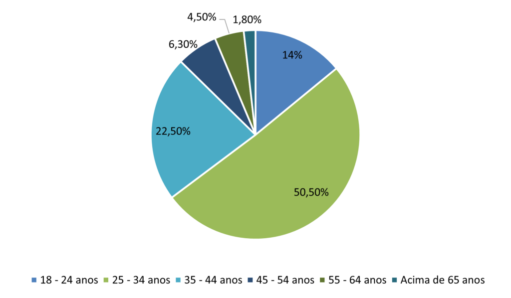 A Figura 2 revela que a maior parte do público-alvo (50,5%) tinha entre 25 e 34 anos, o que sugere que campanhas de humanização da marca devem incluir linguagem atual, memes, influenciadores digitais e responsabilidade social para maior engajamento. A segunda maior faixa etária, de 35 a 44 anos (22,5%), indica a necessidade de estratégias distintas para millennials (nascidos entre 1981 e 1996) e geração Z (nascidos entre 1997 e 2012). Embora pessoas com 45 anos ou mais representem percentuais menores (6,3% entre 45-54 anos, 4,5% entre 55-64 anos e 1,8% acima de 65 anos), esse público ainda pode ser alcançado por meio de materiais mais informativos, baseados em confiança, tradição e comunicação mais formal. Esses dados reforçam a importância de adaptar materiais publicitários on-line para serem visualmente atraentes e psicologicamente alinhados aos valores e expectativas de cada grupo etário.