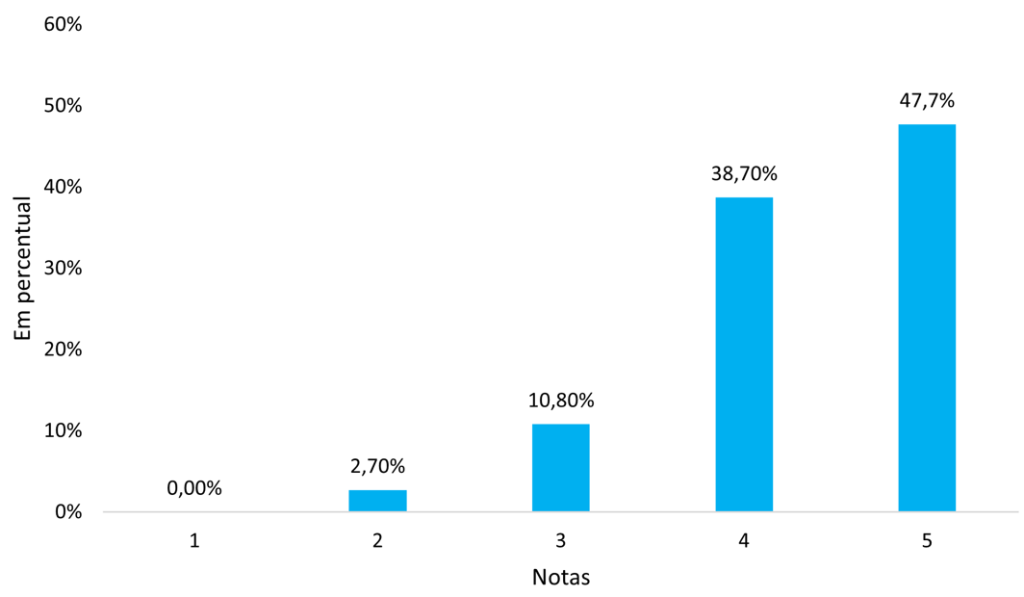 Os dados mostram que 47,7% dos participantes consideraram a humanização muito importante, enquanto 38,7% atribuíram alta importância. Apenas 10,8% a classificaram como moderada, e 2,7%, como baixa, sem registros de respostas que indicaram irrelevância. Isso sugere que a humanização é um fator decisivo na percepção dos consumidores.