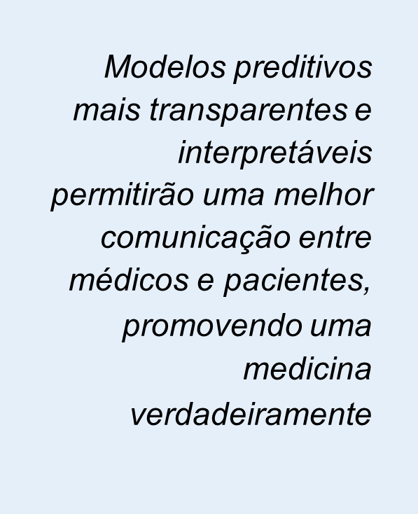 Nos próximos anos, a integração entre a inteligência artificial explicável (XAI) – que torna os modelos de IA mais transparentes e interpretáveis, ajudando a explicar como e por que a IA chegou a determinadas conclusões – e o uso de dados multimodais – que combinam informações genômicas, de imagem, clínicas e de estilo de vida – promete transformar ainda mais a prática médica. Modelos preditivos mais transparentes e interpretáveis permitirão uma melhor comunicação entre médicos e pacientes, promovendo uma medicina personalizada (Yang et al., 2024).