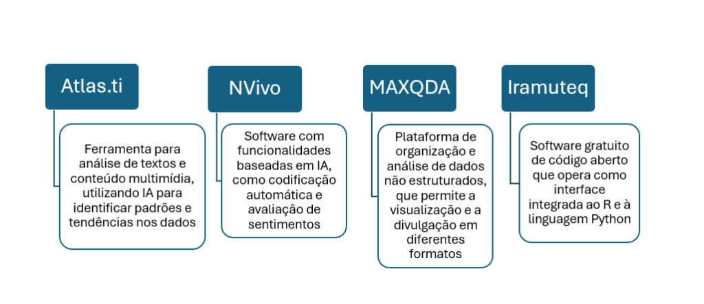 Até mesmo a gamificação está auxiliando os pesquisadores qualitativos. Alguns jogos adaptados estão ajudando na forma como os dados são coletados, tornando o processo mais dinâmico e engajador para os participantes. Em vez de entrevistas tradicionais, é possível criar cenários interativos que simulam situações organizacionais, extraindo percepções e atitudes autênticas em contextos simulados (Mozzato e Bert, 2024). Além desses exemplos, a imagem abaixo apresenta outras ferramentas que podem auxiliar na pesquisa qualitativa.