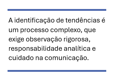 Independentemente das fontes, talvez o aspecto mais importante ao lidar com tendências seja manter-se aberto a múltiplas perspectivas, tratando esses materiais como sinais interpretativos e não como verdades fechadas, sempre considerando o contexto em que serão aplicados.