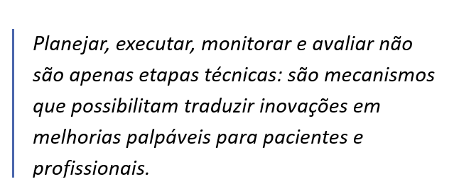 É nesse cenário de alta complexidade que a gestão de projetos ganha relevância. Longe de ser uma metodologia abstrata importada do setor corporativo, trata-se de um conjunto de práticas que ajudam a transformar ideias em resultados concretos. Planejar, executar, monitorar e avaliar não são apenas etapas técnicas: são mecanismos que possibilitam traduzir inovações em melhorias palpáveis para pacientes e profissionais.