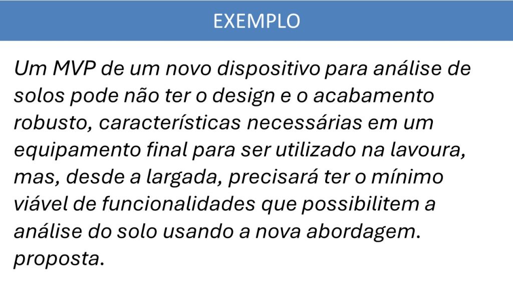 Além do MVP, outras práticas comuns no contexto do codesenvolvimento com startups incluem a realização de provas de conceito (PoC) e de projetos-piloto para validar a eficácia de novas tecnologias em condições reais de operação. Por mais que as tecnologias agrícolas demandem mais tempo para validação, essas práticas permitem às empresas testar de forma mais rápida, reduzir os riscos associados à inovação e aumentar suas chances de sucesso e implementação em escala. Na sequência abaixo é possível acompanhar um exemplo prático.
