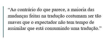 Ao contrário do que parece, a maioria das mudanças feitas na tradução costumam ser tão suaves que o expectador não tem tempo de assimilar que está consumindo uma tradução.