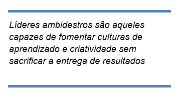 Se a ambidestria é fundamentalmente uma necessidade organizacional, seu motor é a liderança. Líderes ambidestros são aqueles capazes de fomentar culturas de aprendizado e criatividade sem sacrificar a entrega de resultados. Como mostram O’Reilly e Tushman (2013), esses líderes navegam entre o presente e o futuro, entre processos e experimentos, entre métricas e intuição.