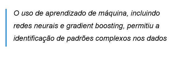 Embora os modelos estatísticos ofereçam uma abordagem estruturada para a previsão de resultados das partidas, sua eficácia depende da escolha adequada das variáveis e da suposição de que o comportamento das equipes segue padrões históricos. Para superar essas limitações, o aprendizado de máquina tem sido cada vez mais utilizado na modelagem preditiva do futebol, explorando grandes volumes de dados e permitindo a identificação de padrões mais complexos (Yeung et al., 2023).