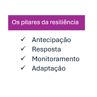 Organizações resilientes conseguem tomar decisões rápidas, alocar recursos com agilidade e manter a coesão interna mesmo sob pressão. O terceiro pilar é a capacidade de monitoramento, que envolve o acompanhamento sistemático de processos, contextos e indicadores internos e externos. Essa vigilância contínua permite à organização perceber desvios, ajustar rotas e corrigir vulnerabilidades de forma tempestiva com ações preditivas.