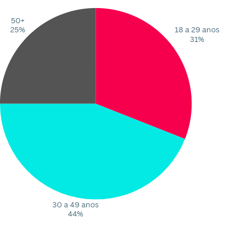Uma pesquisa realizada pela Opinion Box (2023) trouxe alguns importantes dados sobre o comportamento dos usuários do TikTok, como por exemplo, a faixa de idade: 31% tinham de 18 a 29 anos; 44%, de 30 a 49 anos; e 25%, 50 anos ou mais. Isso mostra que, embora haja uma forte presença dos jovens, eles não eram os únicos presentes na rede.