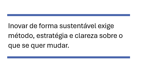 Olhar para inovação de forma pragmática significa entender que não basta ter ideias — é necessário ter direção. Inovar de forma sustentável exige método, estratégia e clareza sobre o que se quer mudar. Exige investimentos e planos bem estruturados, capazes de gerar resultados tangíveis e preparar a organização para diferentes futuros. Quem trata inovação apenas como rótulo dificilmente acessará políticas de incentivo, editais de fomento ou oportunidades de P&D que geram receita.